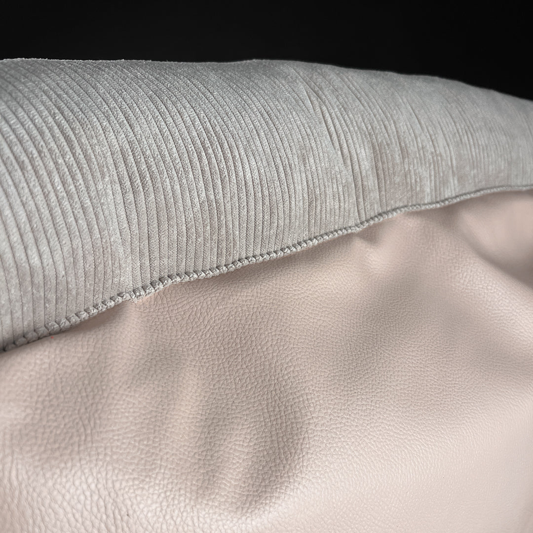 Das Kissen-Inlett besteht aus wasserabweisendem Stoff, der verhindert, dass Feuchtigkeit zur Füllung gelangt. Der Boden des Körbchens ist aus strapazierfähigem Kunstleder gefertigt, das leicht abzuwischen ist und beständig gegen Schmutz und leichte Feuchtigkeit bleibt.