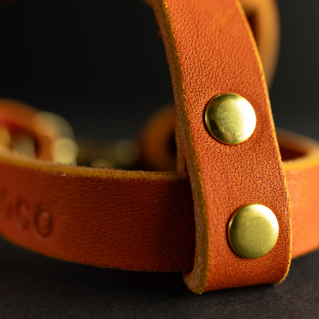 Mit 12 verschiedenen Lederfarben und der Wahl zwischen Messing- oder Stahlbeschlägen kannst du das Geschirr ganz nach deinem Geschmack gestalten.