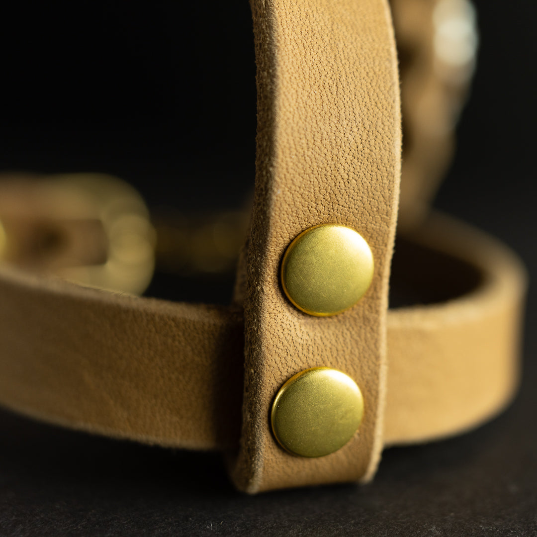Mit 12 verschiedenen Lederfarben und der Wahl zwischen Messing- oder Stahlbeschlägen kannst du das Geschirr ganz nach deinem Geschmack gestalten.