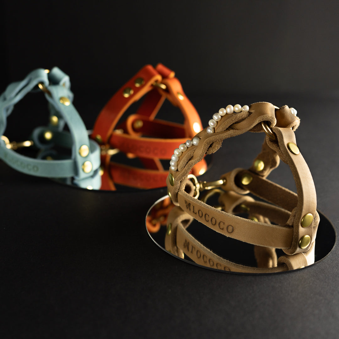 Das Perla Geschirr wird exklusiv, maßgeschneidert nach den Maßen deines Hundes, durch feinste Handarbeit individuell in Deutschland angefertigt.