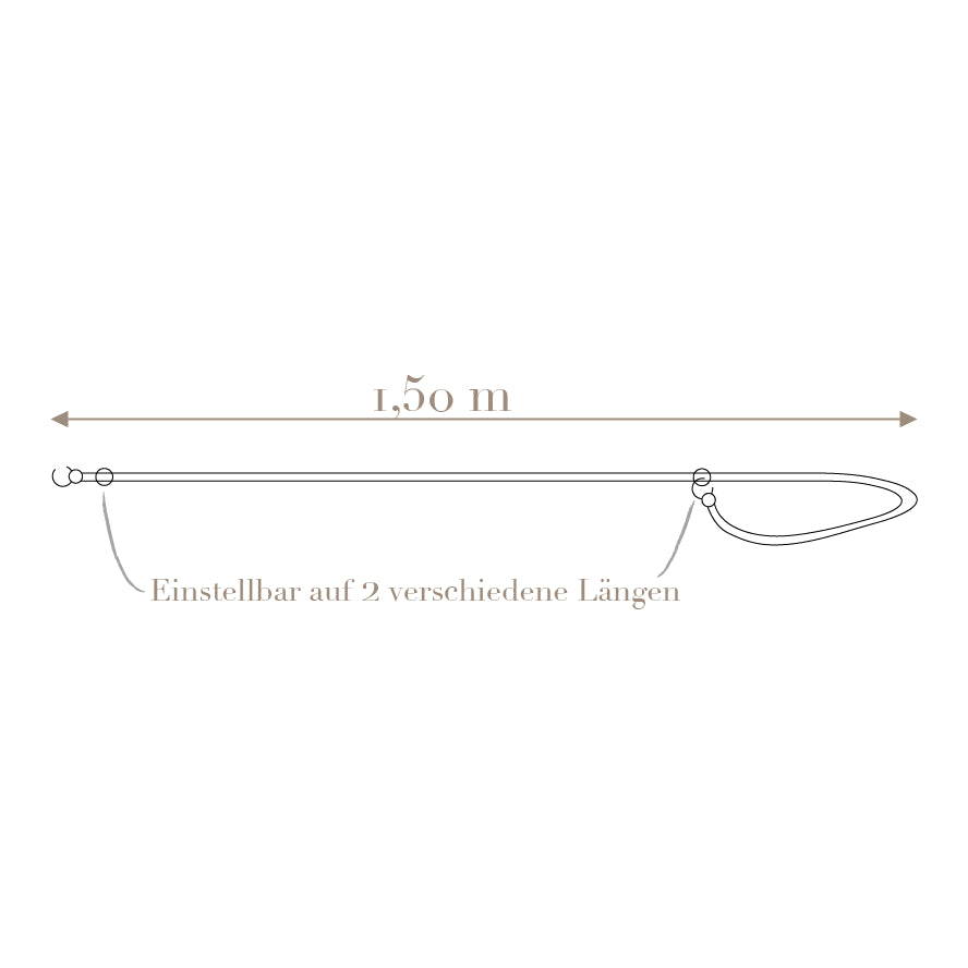 Mit einer Länge von 1,50 m ist diese Leine ideal für die Stadt. Sie lässt sich zweifach verstellen, sodass du deinen Vierbeiner im Restaurant problemlos und schnell anbinden kannst.